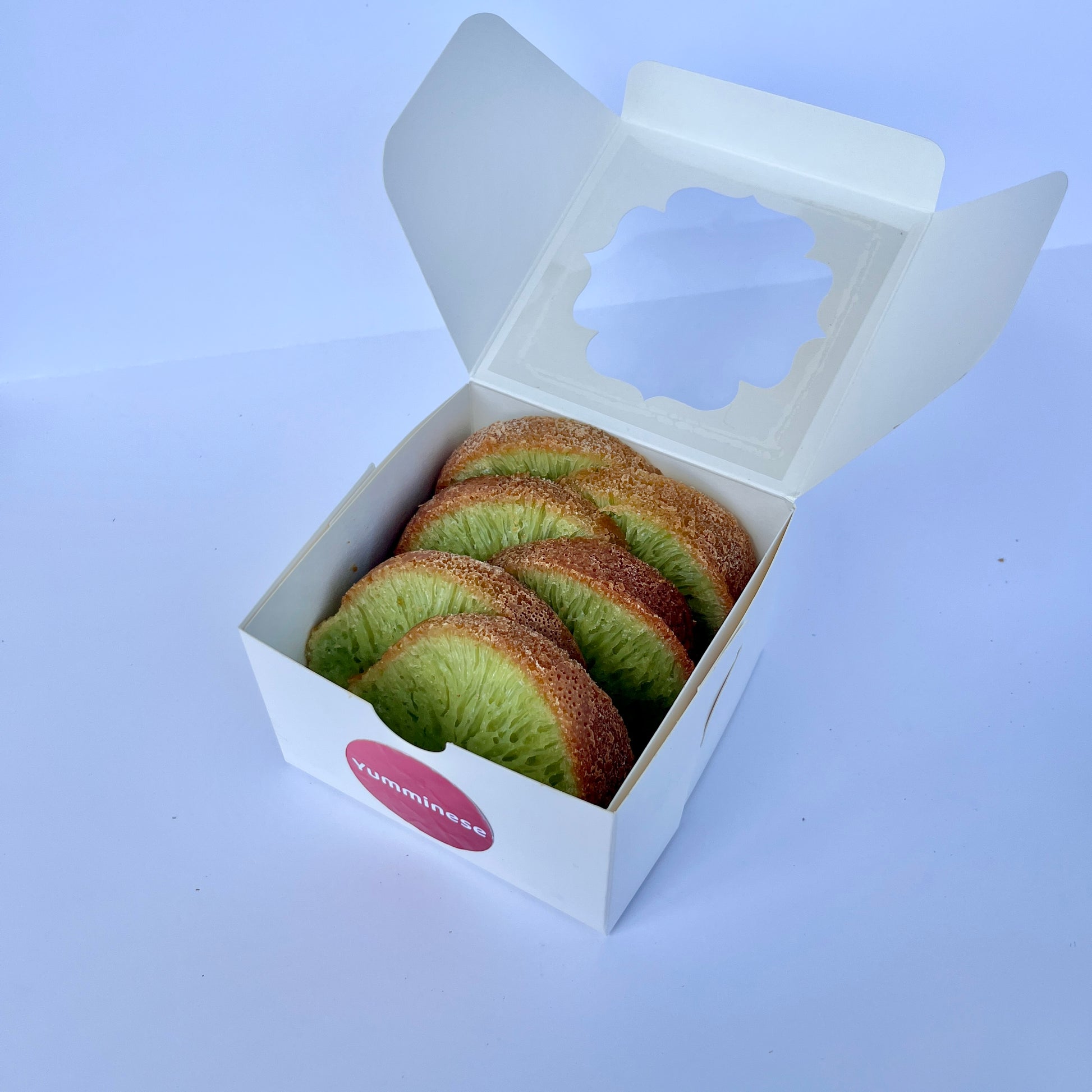 Originating from Vietnam, the honeycomb cake carries the grassy scent of pandan — a fragrance that transports you, as if you’re wandering through Vietnam’s lush jungles. Its honeycomb pattern draws you in, and the airy bounce keeps your mouth wondering what other secrets this jungle-born cake might hold.
